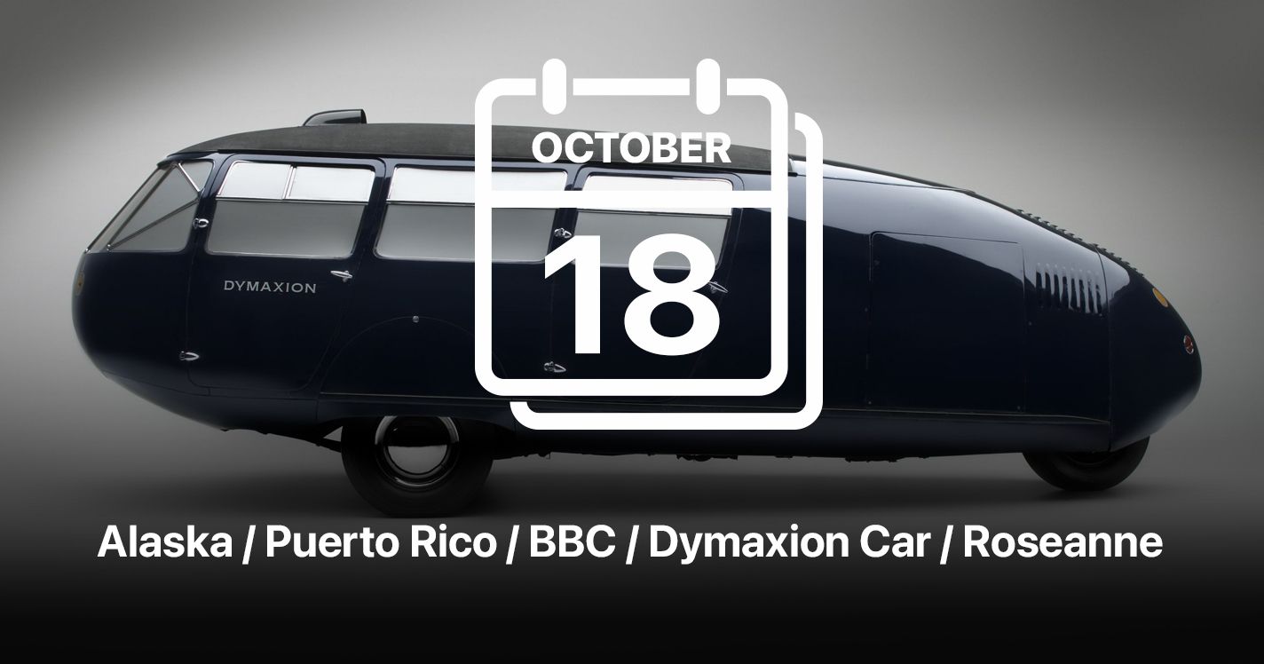 Good morning — it’s Saturday, October 18. Today we’re exploring the Old Summer Palace's burn, Alaska, and Puerto Rico joining the US, Dymaxion and Roseanne's debut, and much more — slick, precise, and clean.