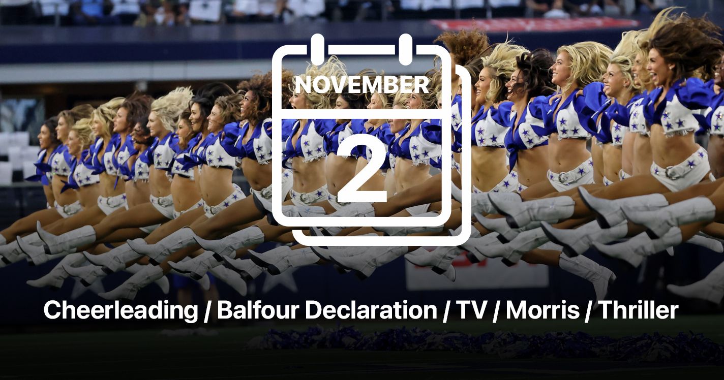 Good morning — it’s Sunday, November 2. Today we're exploring Cheerleading, the Balfour Declaration, the first internet-distributed computer worm, Michael Jackson's Thriller, and more — all quick and to the point.