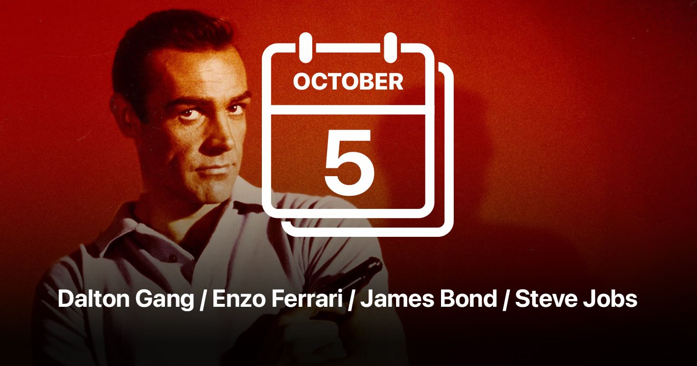 Good morning — it’s Sunday, October 5. Today, we're exploring real Daltons' story, Enzo Ferrari's first race, the end of Pinochet's regime, the first James Bond movie, and much more.