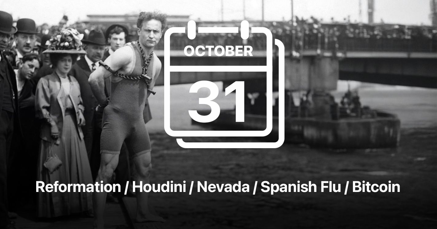 Good morning — it’s Friday, October 31. Today, we're diving into the Protestant Reformation, Houdini's death, the Spanish flu, Bitcoin's birth, and more - quick, sharp, and source-clean.