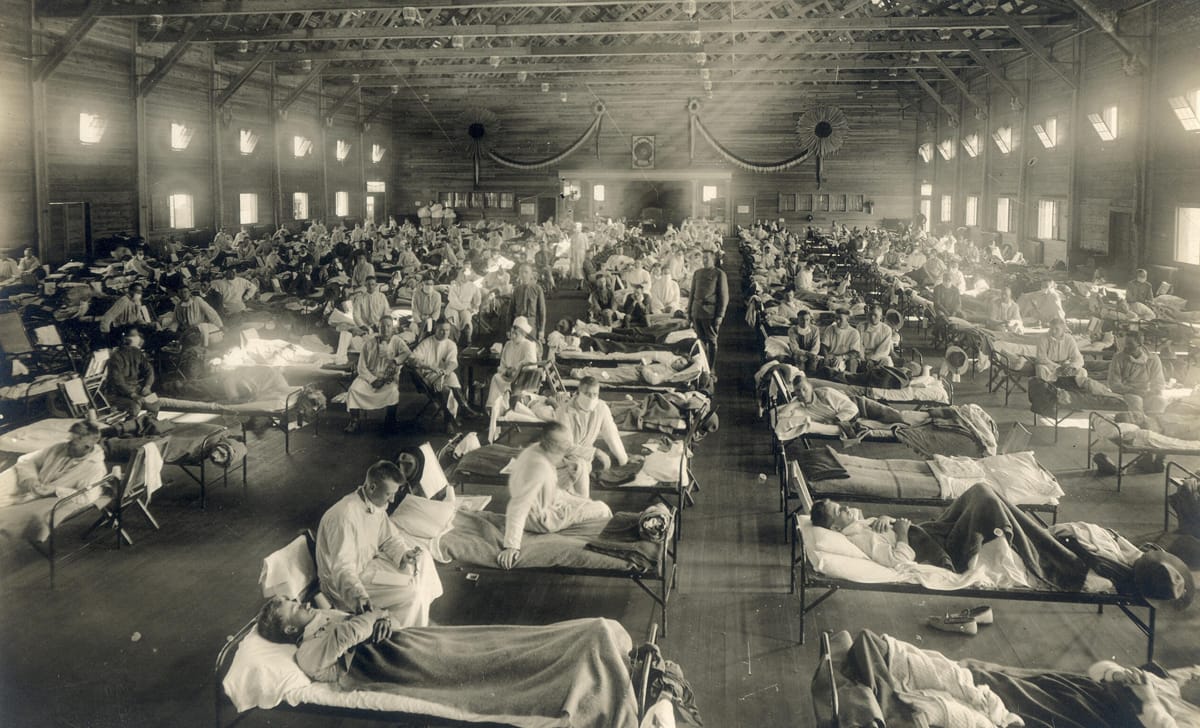 Hospitalized soldiers with Spanish flu at Camp Funston in Fort Riley, Kansas, 1918